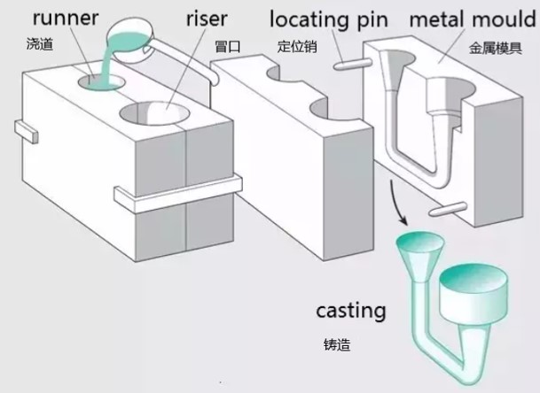 Low-pressure casting: refers to the method of filling the mold with liquid metal under low pressure (0.06-0.15MPa) and crystallizing under pressure to form castings.